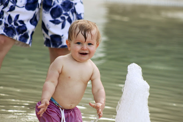 Now here he is at almost thirteen months! He is having a blast in those little fountains!